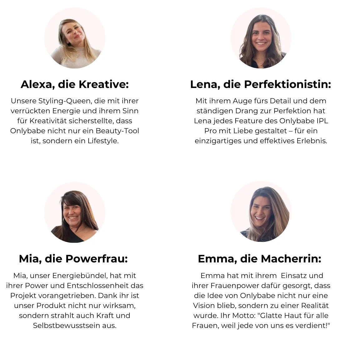 "Damals hatte ich mit den gleichen Problemen zu kämpfen wie viele Frauen: eingewachsene Haare, ständiges Rasieren und starker Haarwuchs im Intimbereich. Es fühlte sich an wie ein endloser Kampf und ich war frustriert. Also beschloss ich, etwas dagegen zu unternehmen und wir gründeten Onlybabe."